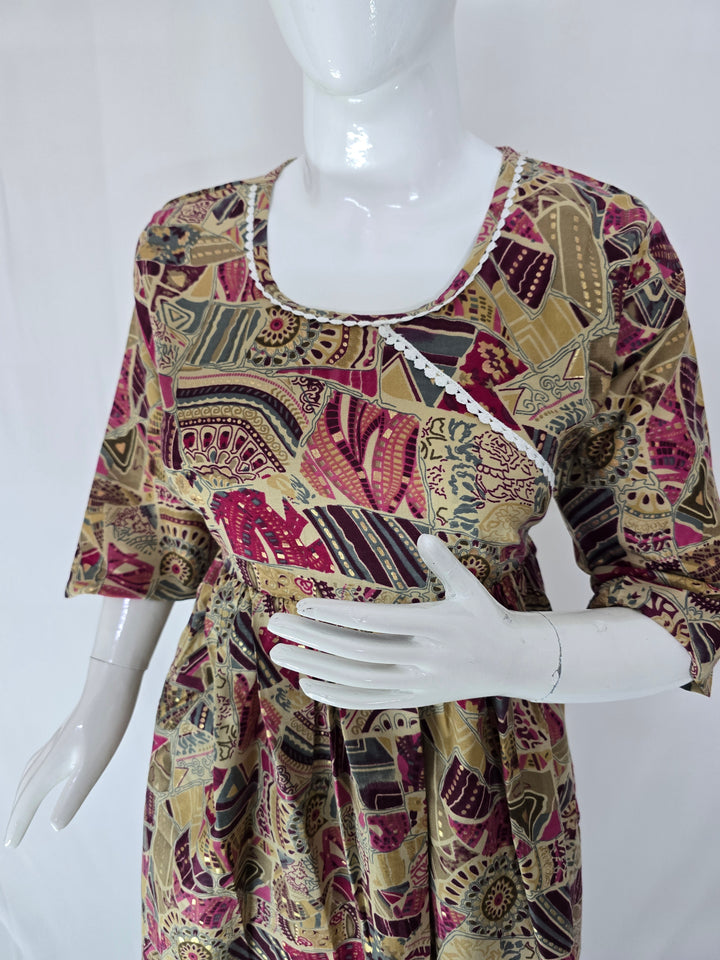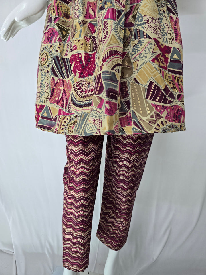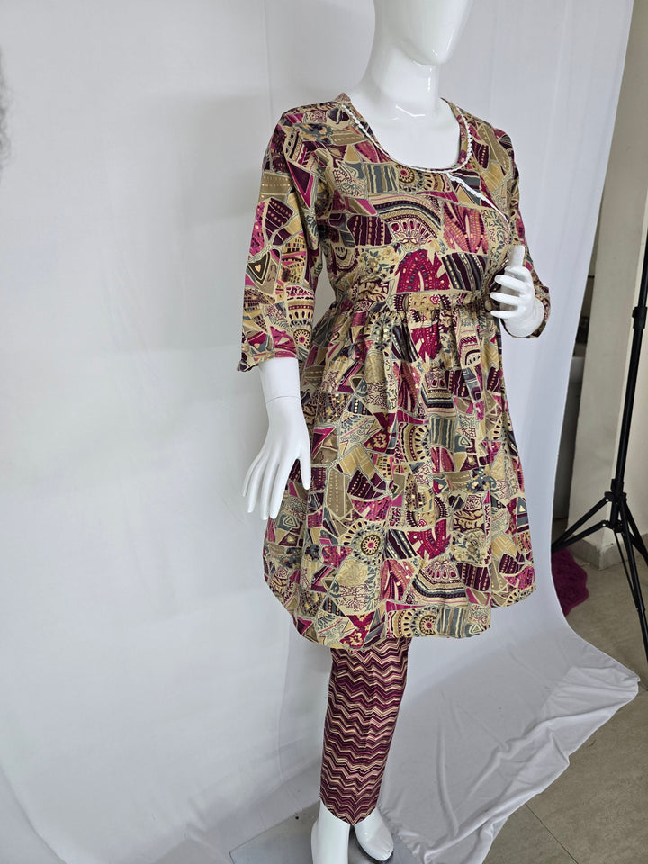 Name : Ethnic Printed Round-Neck Cotton Blend A-Line Kurta with Trousers